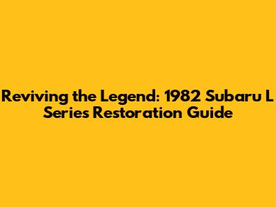 Reviving The Legend: 1982 Subaru L Series Restoration Guide