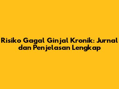 Risiko Gagal Ginjal Kronik: Jurnal Dan Penjelasan Lengkap