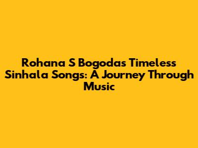 Rohana S Bogoda's Timeless Sinhala Songs: A Journey Through Music