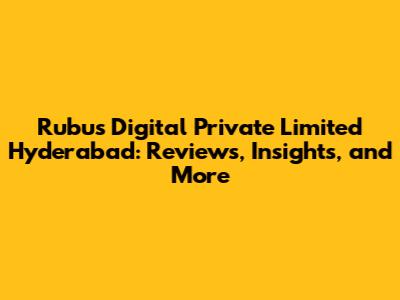 Rubus Digital Hyderabad: Reviews, Insights, And More