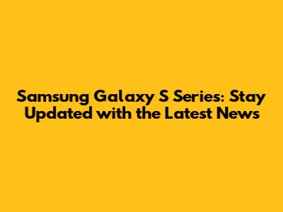 Samsung Galaxy S Series: Latest News & Updates