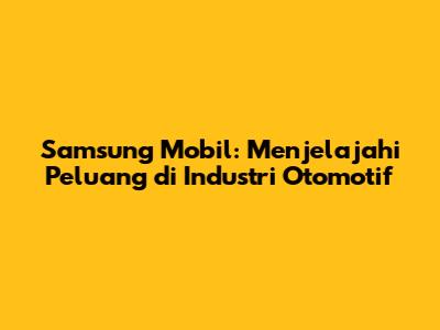 Samsung Mobil: Fakta, Rumor, Dan Masa Depan Otomotif
