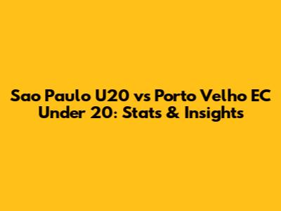 Sao Paulo U20 Vs Porto Velho U20: Stats & Insights