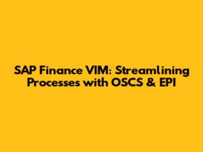 SAP Finance VIM: Unveiling OSCS & EPI For Efficiency