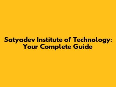 Satyadev Institute Of Technology: Your Complete Guide