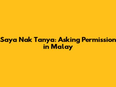 Saya Nak Tanya: Asking Permission In Malay