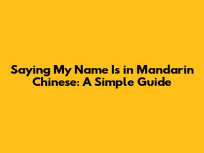 Saying My Name Is In Mandarin Chinese: A Simple Guide