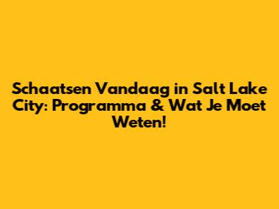 Schaatsen Vandaag In Salt Lake City: Programma & Wat Je Moet Weten!