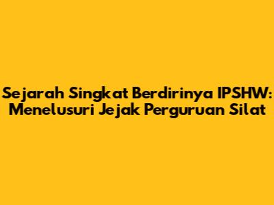 IPSHW (Ikatan Pencak Silat Hisbul Wathan) merupakan salah satu perguruan silat yang memiliki sejarah panjang dan kontribusi besar dalam dunia pencak silat di Indonesia. Pertanyaan mendasar mengenai IPSHW didirikan tahun berapa seringkali muncul bagi mereka yang tertarik dengan sejarah dan perkembangan bela diri ini. Untuk menjawab pertanyaan tersebut, mari kita telusuri lebih dalam mengenai awal mula berdirinya IPSHW, tokoh-tokoh penting di baliknya, serta perjalanan panjang yang telah ditempuh hingga menjadi salah satu perguruan silat yang dikenal luas.