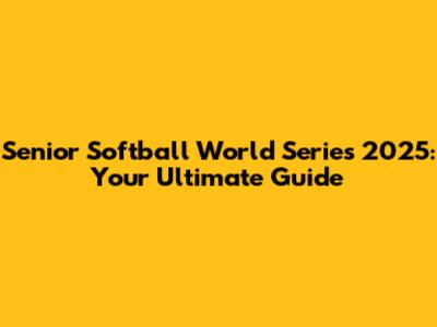 Senior Softball World Series 2025: Your Ultimate Guide