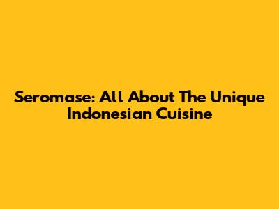 Seromase: All About The Unique Indonesian Cuisine