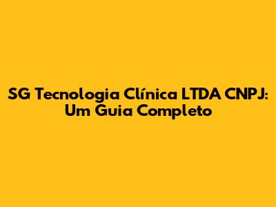 SG Tecnologia Clínica LTDA CNPJ: Tudo O Que Você Precisa Saber