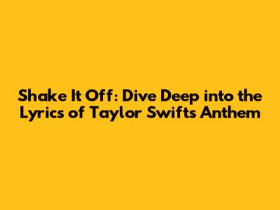 Shake It Off: Lyrics & Meaning - Taylor Swift Hit