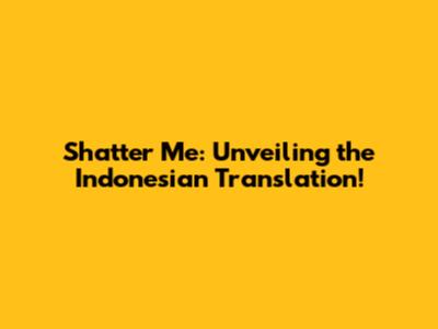 Shatter Me: Unveiling The Indonesian Translation!