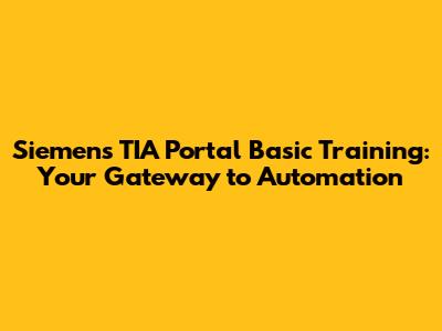 Siemens TIA Portal Basic Training: Your Gateway To Automation