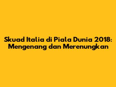 Meskipun Italia gagal lolos ke Piala Dunia 2018, kita tetap bisa bermimpi dan membayangkan bagaimana Skuad Italia bisa tampil di turnamen tersebut. Kita telah membahas potensi pemain, formasi, dan taktik yang mungkin diterapkan. Kegagalan ini tentu menyakitkan, namun dari pengalaman tersebut, kita bisa belajar banyak hal. Kita berharap Italia bisa bangkit kembali, membangun tim yang kuat, dan meraih kesuksesan di masa depan.