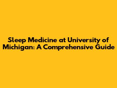 Sleep Medicine At University Of Michigan: A Comprehensive Guide
