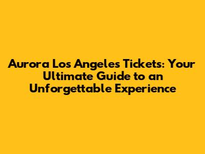 Snag Your Aurora LA Tickets: A Complete Guide