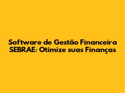 Software De Gestão Financeira SEBRAE: Otimize Suas Finanças