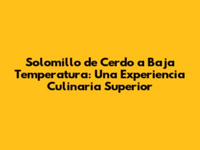 Solomillo De Cerdo A Baja Temperatura: Guía Definitiva