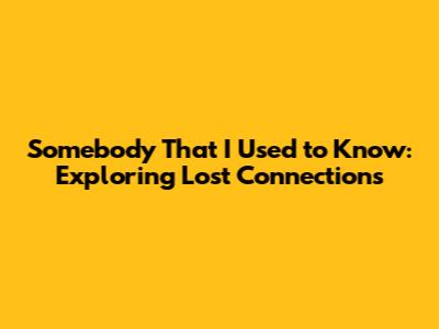 "Somebody That I Used to Know" is more than just a song; it's a cultural phenomenon that explores the complexities of relationships, the pain of heartbreak, and the enduring search for connection. Its relatable lyrics, innovative music video, and lasting impact have solidified its place in music history. Whether you're a longtime fan or a new listener, the song's message continues to resonate with anyone who has ever experienced the joys and sorrows of love. So, the next time you hear that familiar melody, take a moment to reflect on the power of human connection and the importance of cherishing the relationships that matter most.