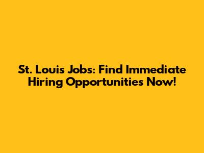 St. Louis Jobs: Find Immediate Hiring Opportunities Now!