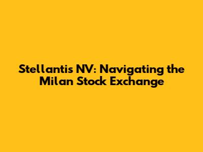 Hey guys! Let's dive into the fascinating world of Stellantis NV and its presence on the Milan Stock Exchange (also known as the Borsa Italiana). This is a really interesting topic, especially if you're into the automotive industry or just curious about how global companies operate financially. We'll be breaking down Stellantis, its stock performance, and what it all means for investors. So, buckle up; it's going to be a fun ride!