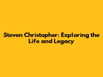 Steven Christopher: A Deep Dive Into His Life And Work