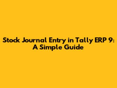 Stock Journal Entry In Tally ERP 9: A Simple Guide