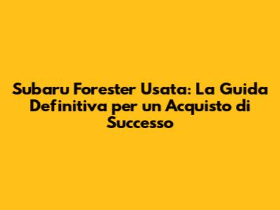 Ciao a tutti, appassionati di auto! Siete alla ricerca di un Subaru Forester usato e volete assicurarvi di fare la scelta giusta? Ottimo! In questa guida completa, vi sveleremo tutti i segreti per un acquisto sicuro e soddisfacente. Che siate neofiti o esperti, troverete informazioni preziose per orientarvi nel mercato dell'usato e trovare il Forester dei vostri sogni. Pronti a partire? Allacciate le cinture, perché stiamo per esplorare il mondo del Subaru Forester usato, con consigli pratici, suggerimenti utili e tutto ciò che c'è da sapere prima di fare il grande passo.