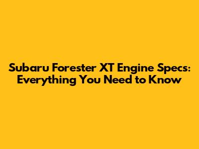 Subaru Forester XT Engine Specs: Everything You Need To Know