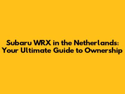 Finding Your Subaru WRX in the Netherlands