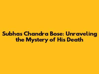 Subhas Chandra Bose: Unraveling The Mystery Of His Death
