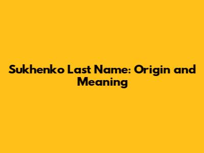 Sukhenko Last Name: Origin And Meaning