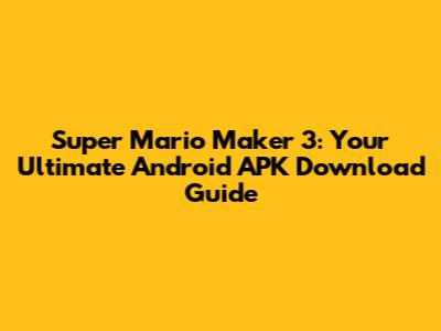 Super Mario Maker 3: Android APK Download Guide