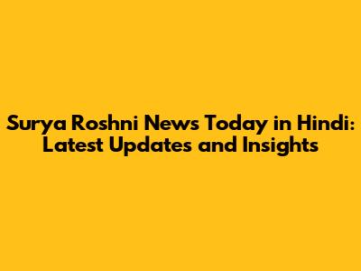 Surya Roshni News Today: Updates & Insights