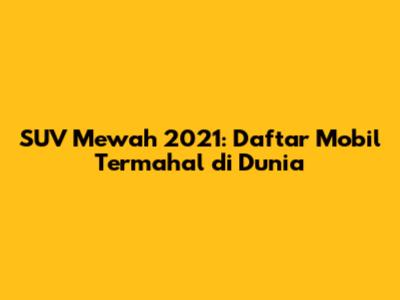 SUV termahal di dunia 2021 menawarkan kombinasi kemewahan, performa, dan teknologi yang luar biasa. Mobil-mobil ini bukan hanya sekadar alat transportasi; mereka adalah pernyataan gaya hidup dan simbol status. Bagi para penggemar otomotif yang memiliki anggaran tak terbatas, memiliki salah satu dari SUV ini adalah impian yang menjadi kenyataan. Mari kita telusuri daftar SUV termahal di dunia pada tahun 2021, mengungkap fitur-fitur eksklusif, performa mengesankan, dan harga yang mencengangkan. Artikel ini akan membawa Anda menyelami dunia SUV mewah, memberikan wawasan mendalam tentang apa yang membuat mobil-mobil ini begitu istimewa dan mengapa mereka menjadi incaran para kolektor dan pecinta otomotif.