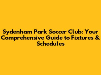 Decoding the Sydenham Park Soccer Club Fixture Details: What You Need to Know