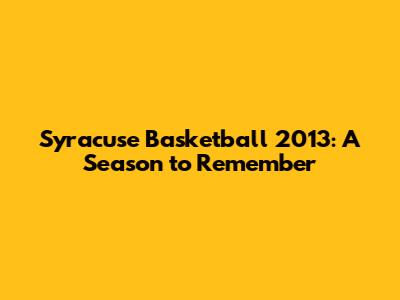 The 2013 Syracuse Orange basketball season was a thrilling ride, guys! It's a year that's etched in the memories of Syracuse fans everywhere. This deep dive explores everything that made this season so special, from key players and unforgettable games to the overall impact it had on the program. So, buckle up and let's take a trip down memory lane!