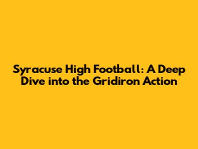Syracuse High Football: A Deep Dive Into The Gridiron Action