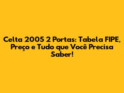 Tabela FIPE: Celta 2005 2 Portas - Preço E Detalhes!