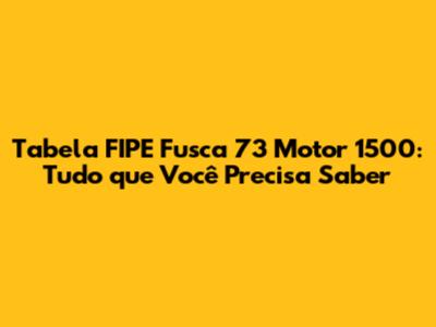 Tabela FIPE Fusca 73 1500: Guia Completo E Atualizado