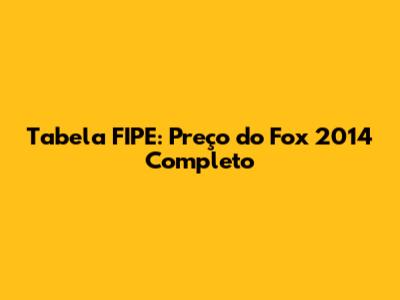 Tabela FIPE: Preço Do Fox 2014 Completo