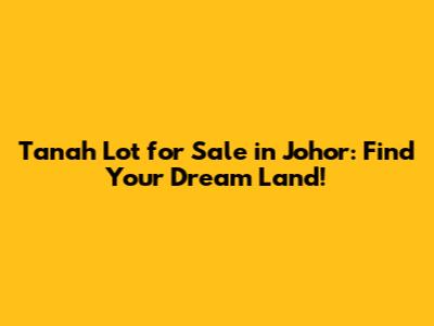 Hey guys! Looking to snag your own piece of paradise in Johor? You've come to the right place! Whether you're dreaming of building a stunning custom home, investing in some prime real estate, or just securing a plot for future use, finding the perfect tanah lot for sale in Johor can be a game-changer. Let's dive into everything you need to know to make your land-buying journey a smooth and successful one.
