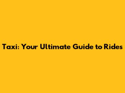 Taxi: Your Ultimate Guide To Rides