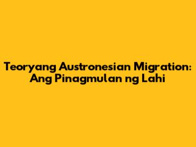 Teoryang Austronesian Migration: Ang Pinagmulan Ng Lahi