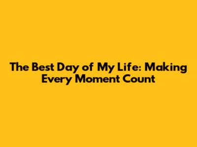 The Best Day Of My Life: Making Every Moment Count