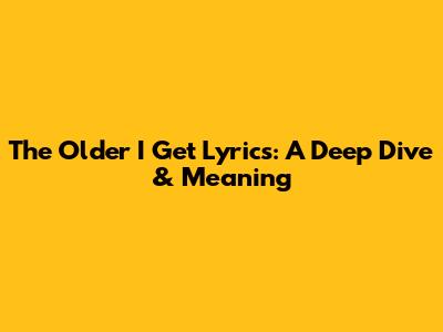 The Older I Get Lyrics: A Deep Dive & Meaning