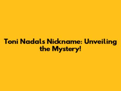 Toni Nadal's Nickname: Unveiling The Mystery!