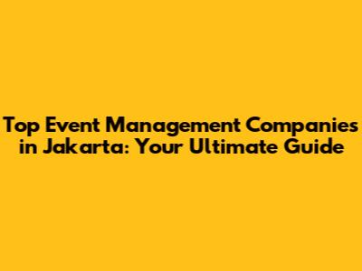 Top Event Management Companies In Jakarta
